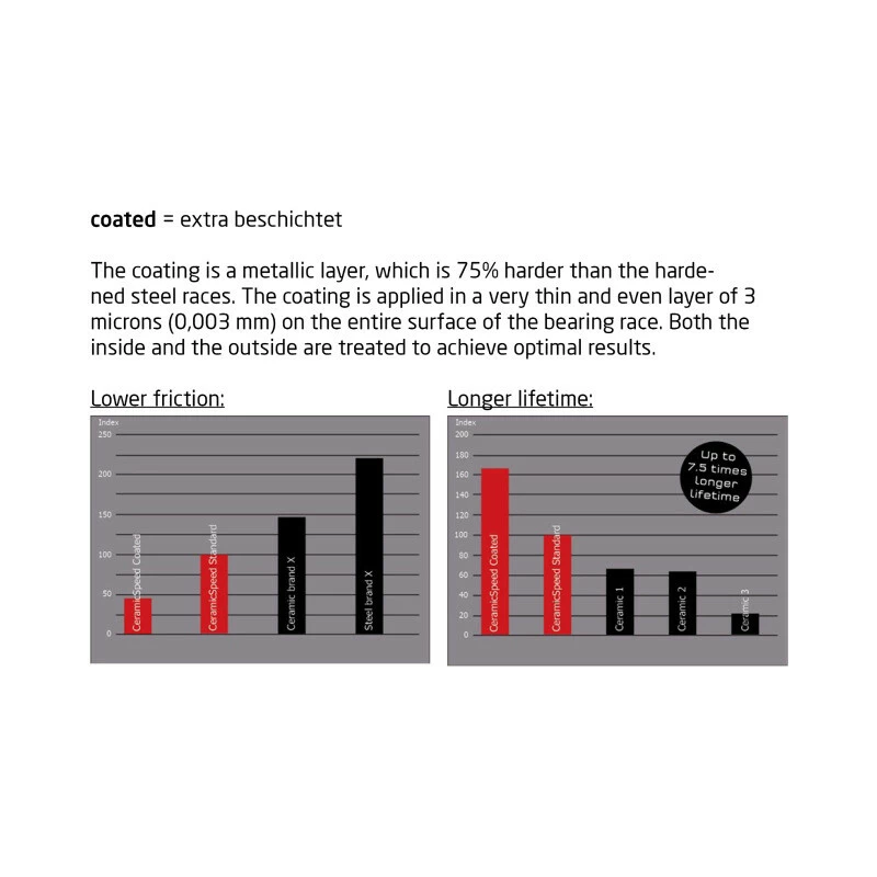 Die CeramicSpeed Standard-Lager bieten eine durchschnittliche Reduzierung des Luftwiderstands von 75 % im Vergleich zu Serien-Tretlagern. Dies bedeutet einen Reibungswiderstand von 0,3 bis 0,4 Watt pro Satz, der das Ergebnis des grossartigen Designs, der gehärteten Stahlringe und der Keramikkugeln ist, die 100 % glatter und 15 % härter sind als die Keramikkonkurrenz.